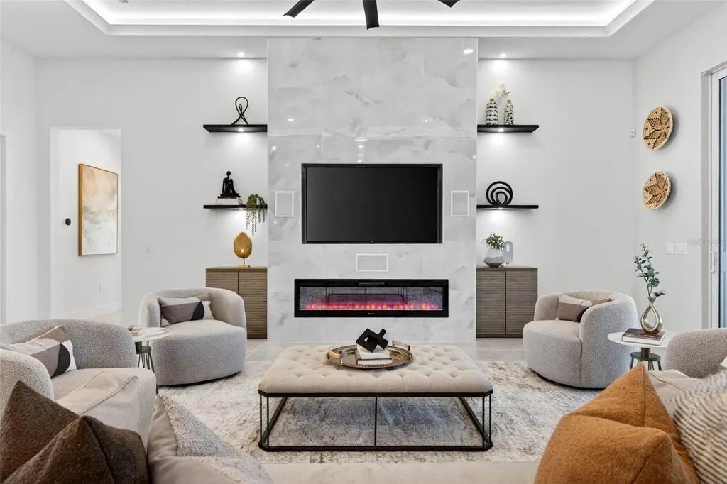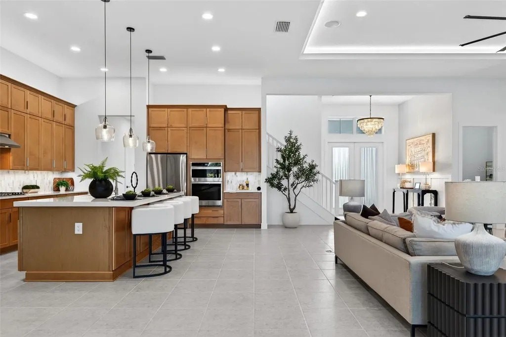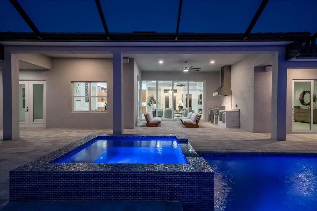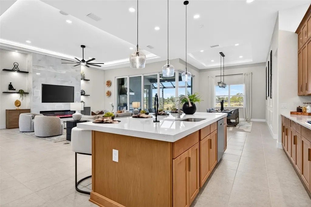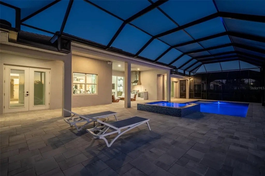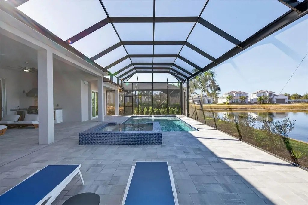 Never lived in and masterfully curated, this 2024 Maxwell Elite residence in The Isles represents the pinnacle of refined luxury living. Designed with uncompromising attention to detail, the owners selected nearly every available upgrade, creating a home that feels both grand and effortlessly livable. Custom entry doors open to a striking foyer with soaring ceilings, leading seamlessly into an expansive open-concept great room and chef's kitchen adorned with top-tier finishes and designer appointments. A bespoke living-room built-in with fireplace serves as an elegant focal point, while dramatic 10-foot, 90-degree hurricane-impact sliders dissolve the boundary between interior and exterior living. The outdoor experience is equally impressive, featuring an extended covered lanai with a custom pool, outdoor kitchen, built-ins, a full cabana bath, and a heavy-duty lanai cage-an entertainer's sanctuary designed for year-round enjoyment. The owner's suite is a private retreat occupying its own wing of the home and enhanced by an extended layout, custom ceiling and tile treatments, dual walk-in closets, and a spa-inspired bath with rain shower. Private 8-foot pocket sliders provide direct access to the lanai, elevating the suite's resort-like ambiance. Three additional bedrooms are all en-suite, offering exceptional privacy for guests, while a sophisticated office and an upstairs bonus room-purposefully designed for seamless conversion to an additional en-suite bedroom-add versatility and future flexibility. Notable enhancements include coffered ceilings, solid-core doors, an upgraded stairwell, additional windows for natural light, core-foam masonry and spray-foam insulation, a circulating hot-water system, tankless gas water heater, secondary pantry, EV charger, electric pre-wiring for air conditioning in the garage, additional exterior garage access, and comprehensive smart-home integration. Further elevating the residence, post-closing upgrades include custom ceiling treatments, designer built-ins, refined tile work, and a fully realized luxury outdoor living environment. Impeccably finished and truly turnkey, this never-occupied home offers a rare opportunity to step into a flawless, resort-caliber residence-where every detail has been thoughtfully executed and nothing remains to be done. Luxurious living in the gated, maintenance-free community of The Isles, nestled between The Lake Club and Concession, at its best! The Isles at Lakewood Ranch offers many amenities such as a 65,000 square foot clubhouse, tennis and pickleball courts, basketball court, playground, state of the art fitness center and yoga room, resort-style swimming pool and spa, boardwalk and fishing pier, and a playground and dog park. Centrally located, just off I-75 and a short drive to the award-winning beaches of Siesta Key, Lido, & Anna Maria. This move-in ready home has all the amenities that one would want in this 2025 Best-Selling Multigenerational Planned Community in the Nation.